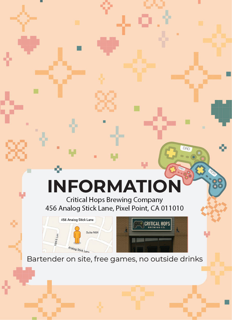 The QR codes and personal information have been replaced to protect the client’s identity. I used ChatGPT to generate the fictional brewery name and create the exterior image.